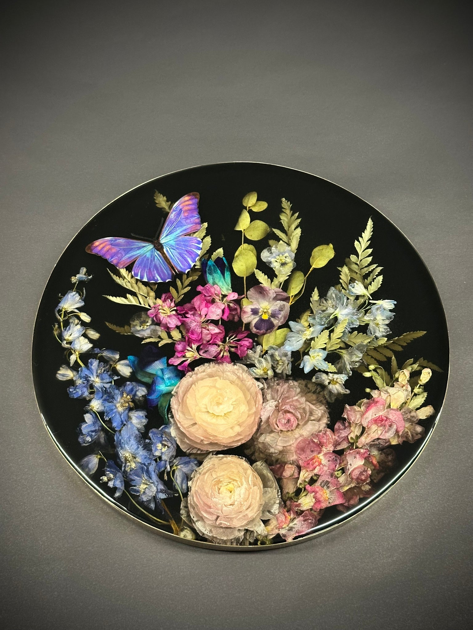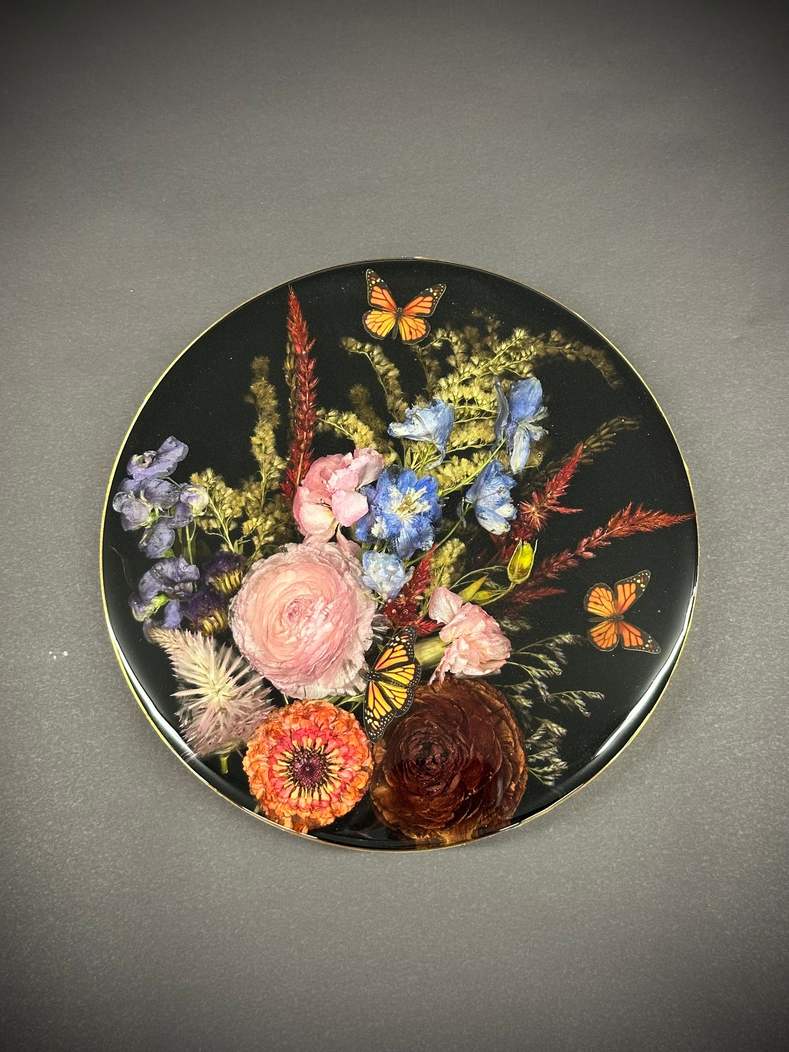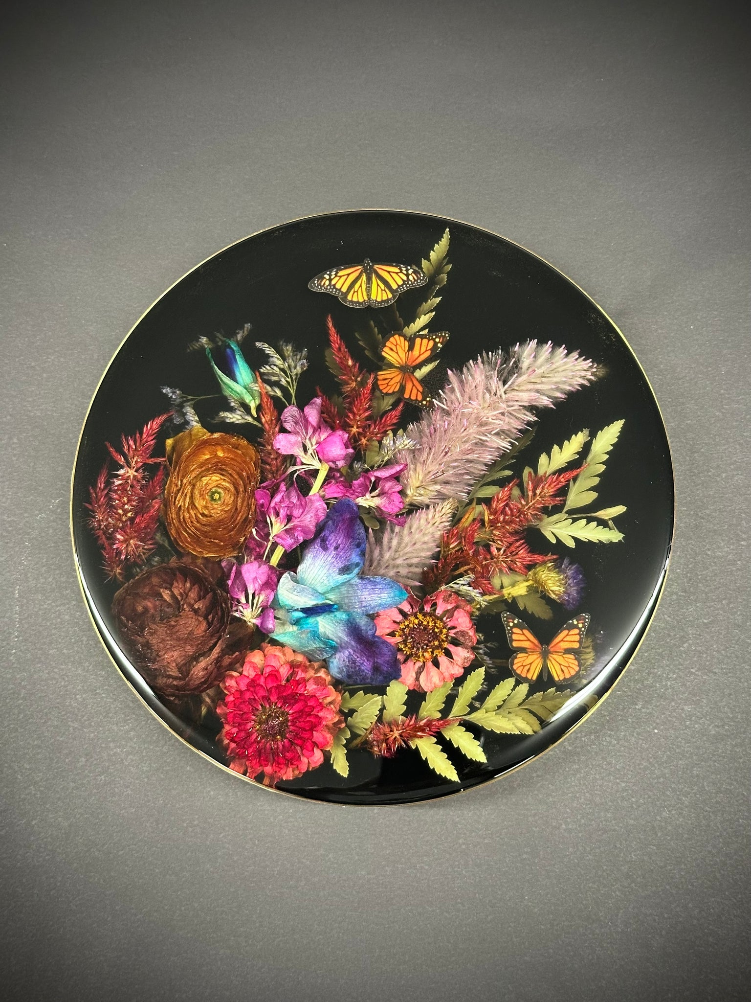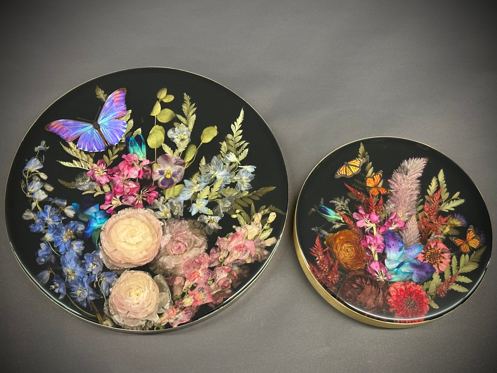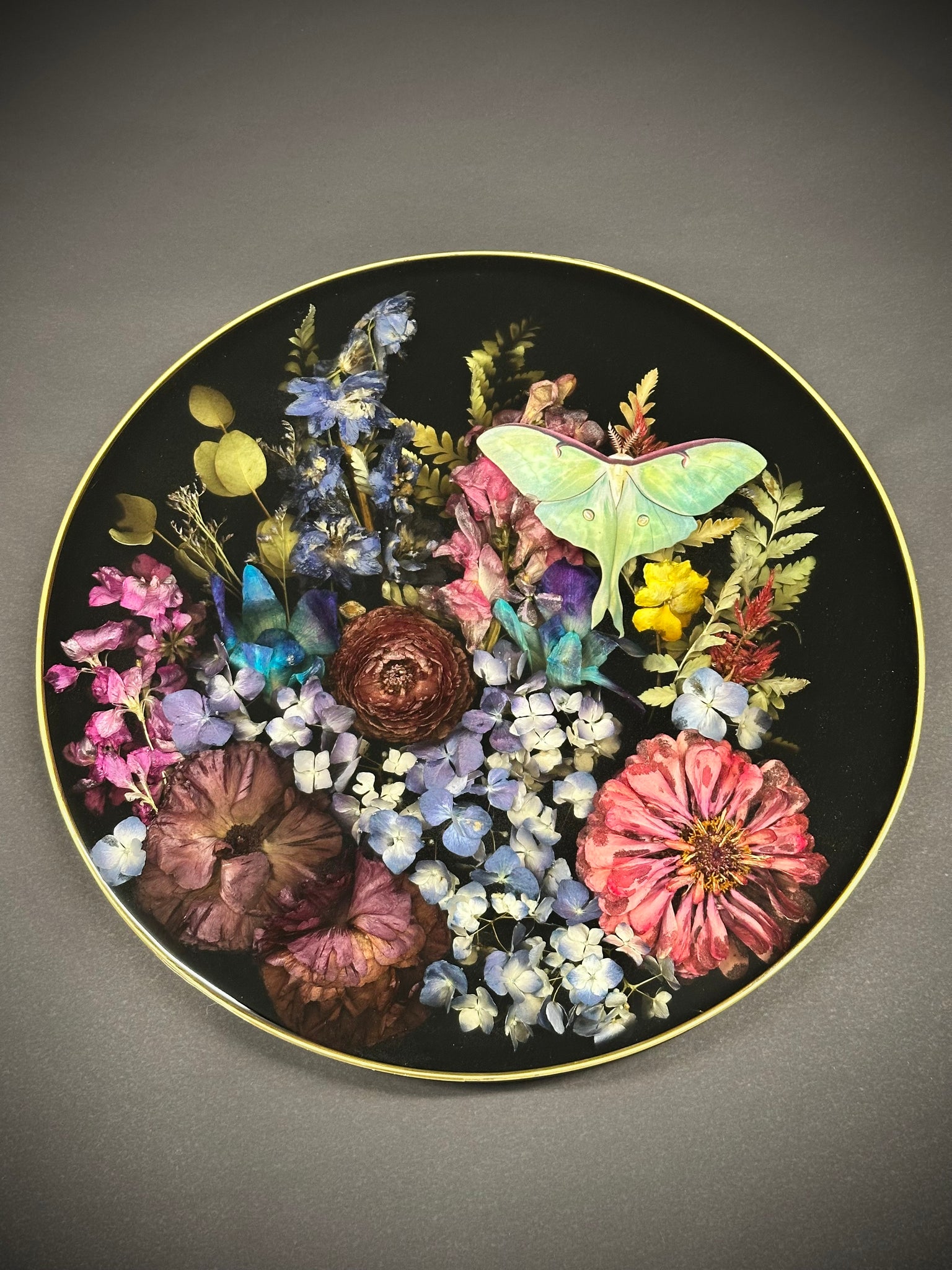 Please Note: This style is Made-To-Order, and takes 4-6 weeks to complete each design from start to finish. Since no two pieces are created exactly the same, Botanicals and Butterfly/Moth specimens vary slightly between each individual piece while looking very similar to the original pieces photographed.